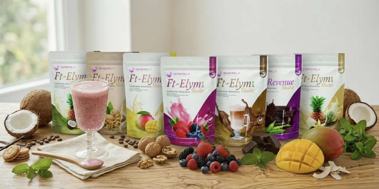 Descubre nuestra línea de malteadas nutricionales en polvo, formuladas para integrarse fácilmente a tu rutina diaria como parte de un estilo de vida activo y equilibrado. El FT-Elym DTX Shake está disponible en 8 deliciosos sabores: nuez dorada, plátano, vainilla-galleta, piña-coco, chocolate-avellana, mango tango, capuchino-canela y frutos rojos. Complementa tu nutrición con el My Revenue Shake sabor chocolate, diseñado para proteger el organismo y potenciar la energía. Todos nuestros shakes son fáciles de preparar — consigue también tu Shaker Ismerely para llevarlos a donde vayas.